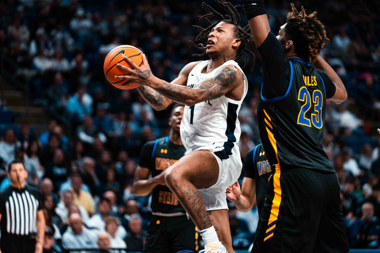 A collection of basketball photos, from fast-paced action shots to candid sideline moments and post-game celebrations.